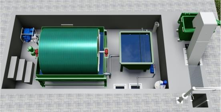 During the rotation, 40% of the disks are immersed in wastewater and the rest are in contact with air.