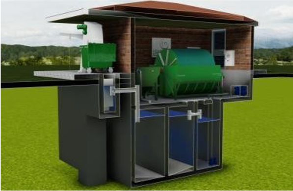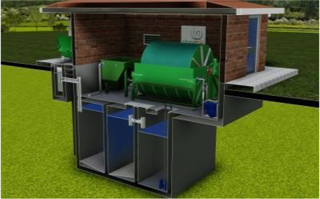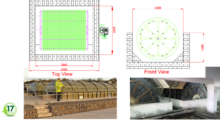 Unit is a fixed film biological Sewage Water Treatment  system consisting of circular disks made of non-corrosive, Polypropylene  (PP), mounted on a solid steel shaft rotating at a speed of less than 4 rpm  (watch in presentation mode for animation).